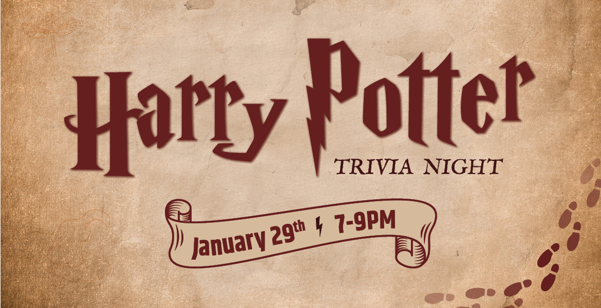 Grab your wands and test your wizarding wisdom at Harry Potter Trivia! Join us January 29 from 7–9 PM for this free event packed with clever questions, big prizes, and food & drink specials so good they’re practically spell-binding.