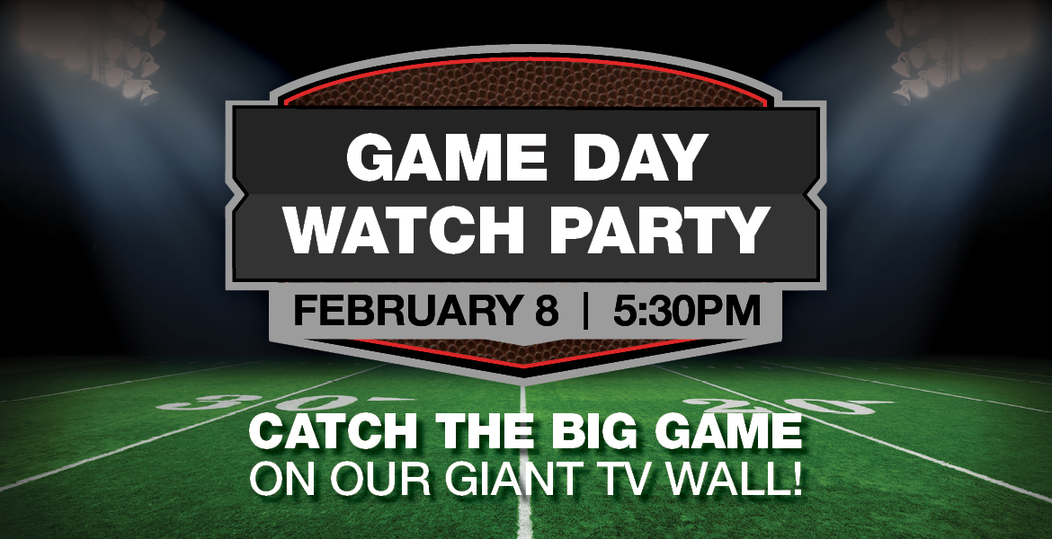 Watch the Big Game on our giant TV wall at our Game Day Watch Party on February 8 at 5:30pm. Enjoy food and drink specials from 12pm–10pm, Surly tastings from 6–8pm, and a halftime drawing for a Jack Daniel’s football helmet and swag.